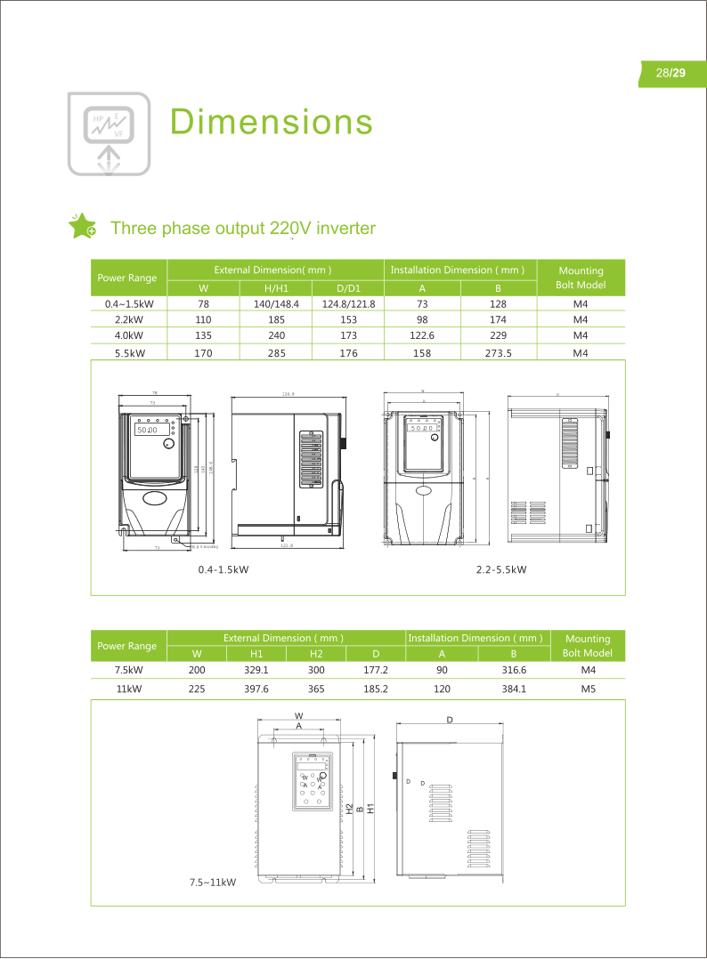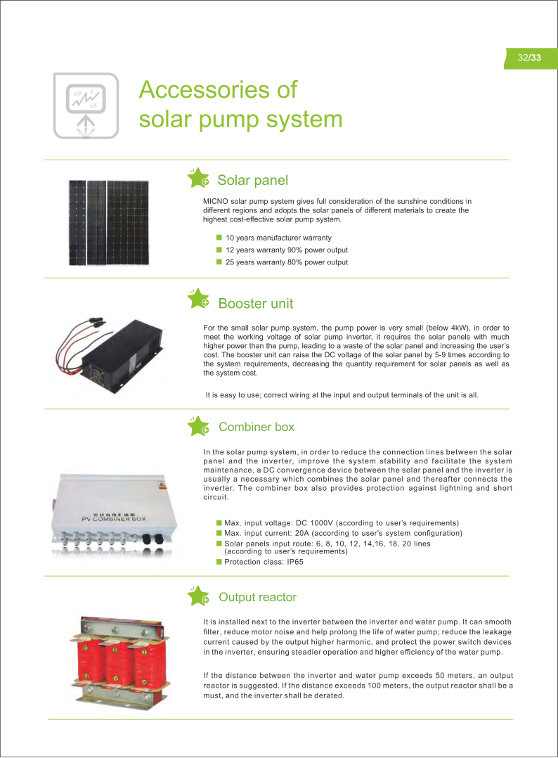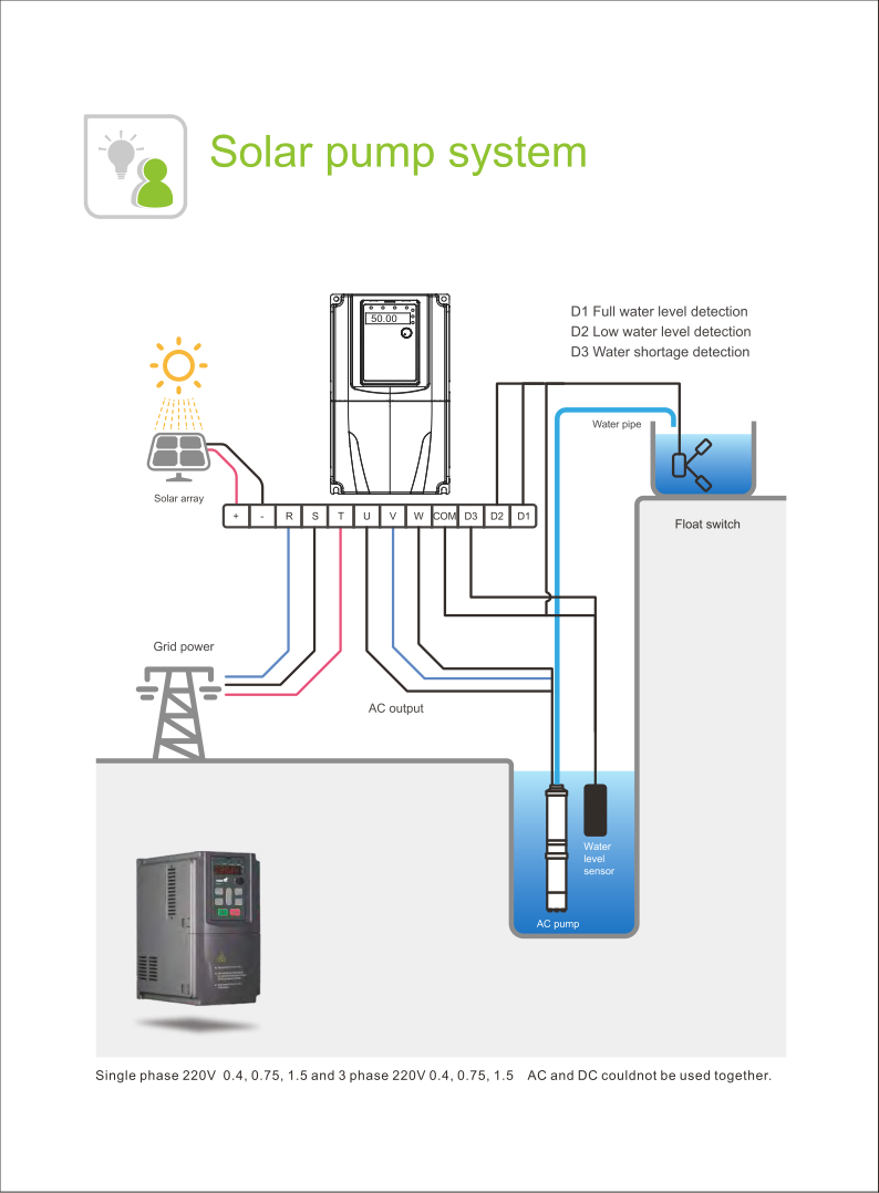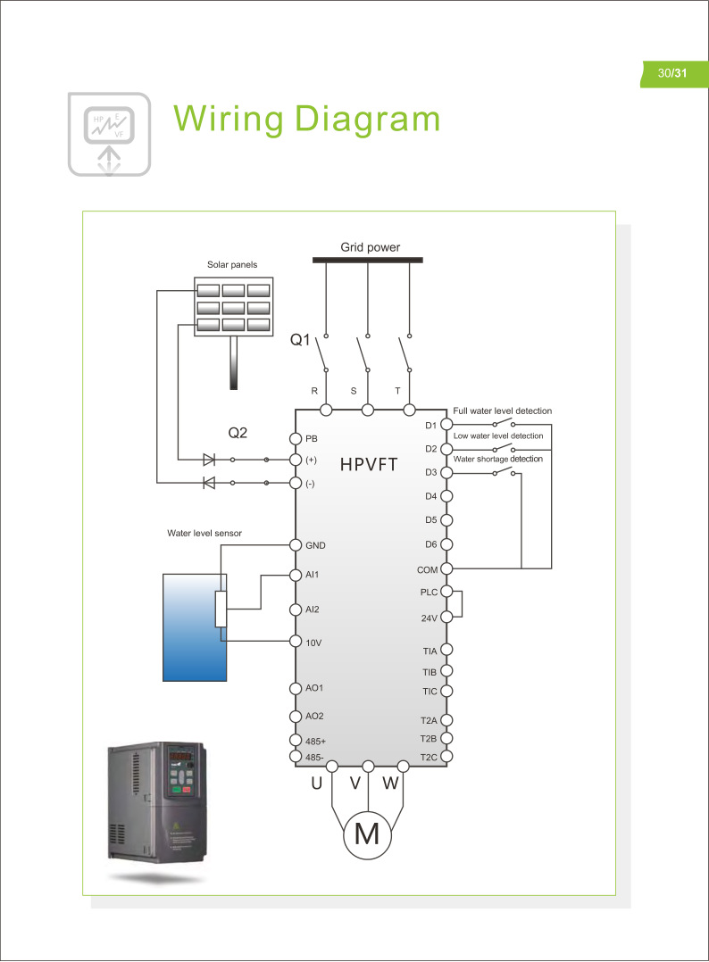 HPVFT inverters are equipped with overall protectionfunction (self-checking functions for dry running,weaksunshine,full water level, etc.),motor soft start andspeed control functions, with perfectfunction,easyoperationandinstallation.